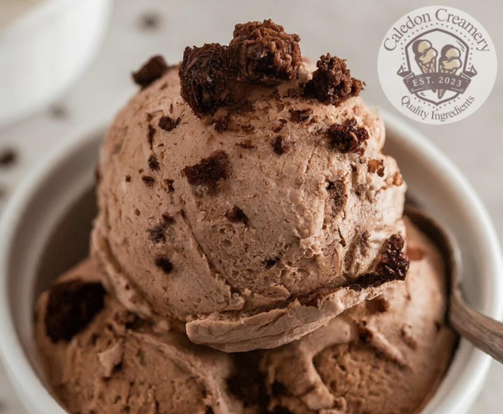 Ingredients: Heavy Cream (35%), Evaporated Milk, Sugar, Lactose, Brownies,Organic Cocoa Powder, Pure Vanilla Extract, Himalayan Pink salt. Contains: Milk, Gluten, Soy, Egg May Contain: Tree Nuts, Peanuts