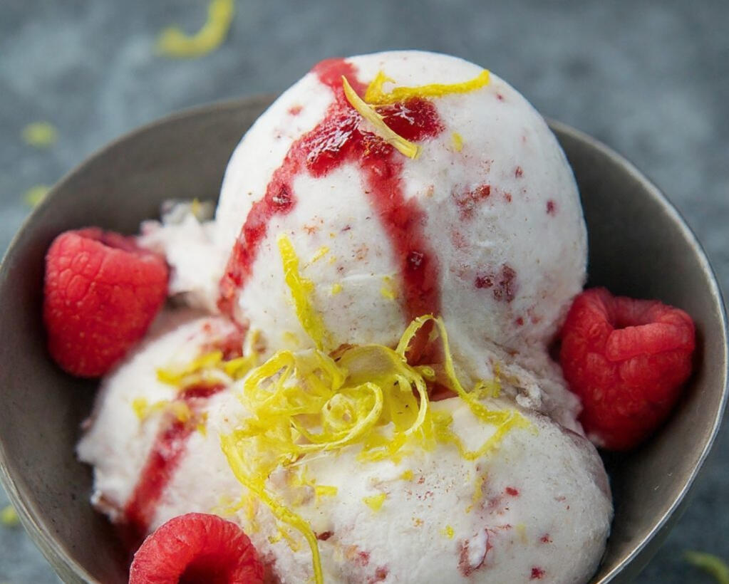 Ingredients: Heavy Cream (35%), Evaporated Milk, Sugar, Lactose, Raspberry Jam (SUGARS , RASPBERRIES, CONCENTRATED LEMON JUICE, PECTIN, BLACK CARROT), Lemon Zest, Lemon Oil Contains: Milk. May Contain: Egg, Soy, Gluten, Tree Nuts Peanuts