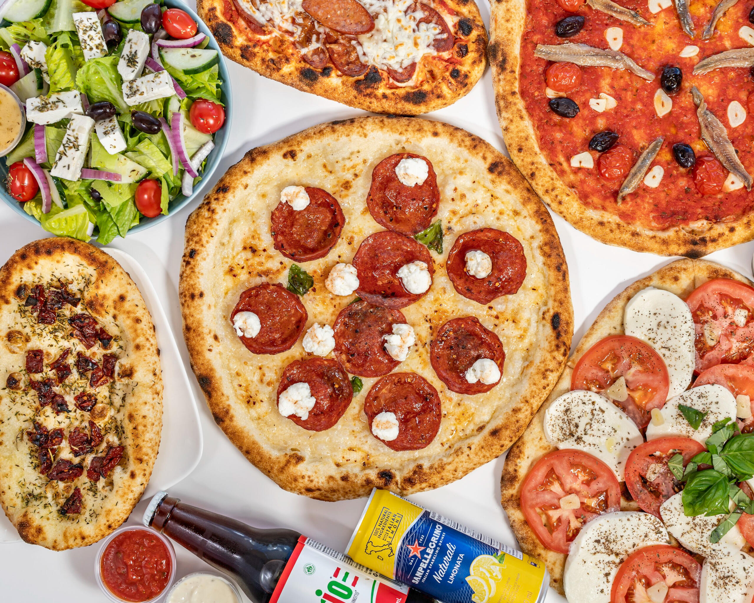 At our pizzeria, we bring you the true taste of Neapolitan-style pizza with a special Mediterranean twist. Our dough is carefully pre-fermented for over seventy-two hours to create a perfectly airy, crispy, yet soft crust.Each pizza is topped with fresh, high-quality ingredients made in-house and baked in our high-temperature oven for just ninety seconds. The result is a taste you’ll crave time and time again.We take pride in offering a colourful menu that caters to a variety of tastes and dietary preferences: We’ve got something for everyone.Our mission is to give you more than just a meal; we want to offer a delightful experience that brings together the best of two worlds. Whether you’re indulging in a beloved classic or trying one of our unique creations, we hope you enjoy every bite and feel the love we put into our food.Come join us and taste the beautiful fusion of Italian and Mediterranean flavours that makes our pizza truly special.
